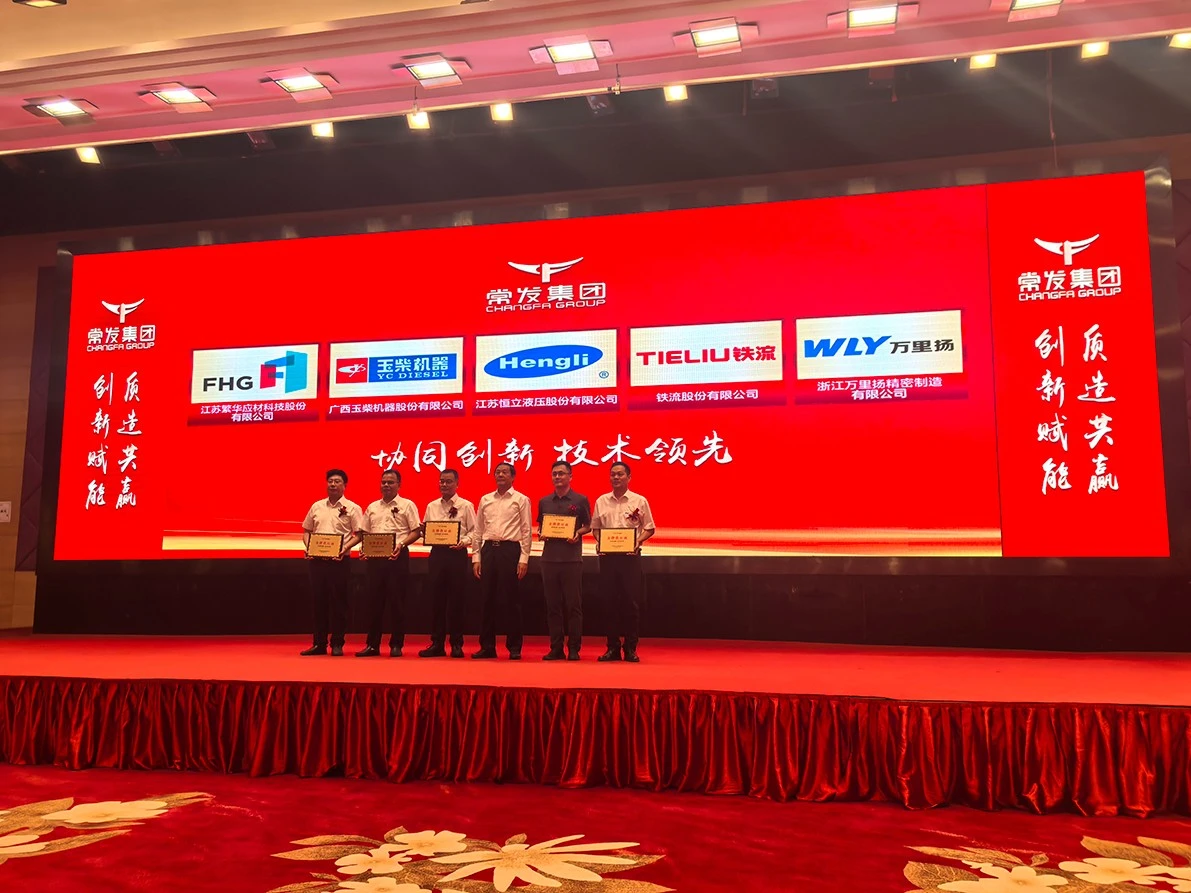 2025 年 5 月 28 日,常发集团以 “创新赋能、质造共赢” 为主题,盛大召开供应商大会。众多行业内的优质企业齐聚一堂,共话合作新篇,探寻发展新机遇,旨在进一步加强供需双方的交流合作,稳固合作根基,携手开拓市场。在本次备受瞩目的大会上,铁流股份凭借自身在产品质量、服务水平以及创新能力等多方面的卓越表现,从众多供应商中脱颖而出,荣获常发集团颁发的 “金牌供应商” 称号。