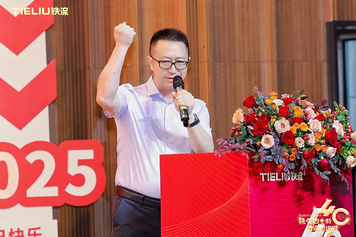 随后,重要客户代表李总分享了与铁流长期合作的感受,畅谈其销售铁流产品的成功心得,高度赞扬了铁流产品的卓越品质和市场竞争力。供应链代表毕总登台发言,讲述了与铁流携手共进、合作共赢的精彩故事,充分肯定了铁流作为合作伙伴的可靠与价值。员工代表岑总则以亲身经历,生动讲述了自己在公司技术部、销售部、行政部等多个部门工作的成长轨迹,展现了铁流为员工提供的广阔发展平台。